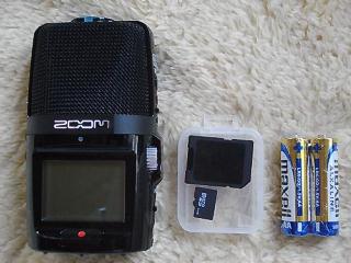 | 「ZOOM:H2n」一式 | 左:H2n 中:マイクロSDカード 右:単3電池 | 左:H2 右:H2n |