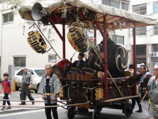 6月9日(土) 「鳥越神社」の例大祭(2) [使用機器:Roland: EDIROL R-09(16bit・44.1KHz)] 「おかず横町」より更に西にある「二長町」の山車が,14時より神酒所前から出ました。山車は大昔に私が見たものとは異なり,飾りは無い実質的なものになっており,中で演奏しているのもプロではなく,アマチュアらしい若い女性達でした。 町会の役員による曳く合図で,山車は子供達によって曳かれ始め,しばらく進んだ後,直角に曲がっていく所までを録音しています。なお,曳いている子供達ですが,以前はみんな揃いの浴衣を着ていましたが,現在は,浴衣を着ている者はほんの僅かで,残りは町会が支給したらしい青いタスキをしているだけで,昔との様変わりを感じました。 (2)2007-06-09nichoumachi_dashi.mp3(1.68MB) 上記の音ファイルを,「OneDrive」中の「sound209」にupしたので,ダウンロードの上,お聴き下さい。 | ||