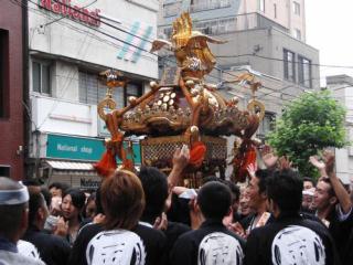2007年 6月9日(土) 「鳥越神社」の例大祭(1) [使用機器:Roland: EDIROL R-09(16bit・44.1KHz)] 2007. 6. 9(土)は,浅草橋駅近くの「鳥越神社」の例大祭で,氏子町内の神輿や本社の神輿が方々を渡御するので,色々と歩いて,神輿を探しました。 「鳥越神社」の西にある「おかず横町」と呼ばれている「鳥越商店街」にて,子供達により山車がひかれ,子供神輿が担がれている出ている所に出会えました。 録音は,そこでの「祭囃子」と「子供神輿」の様子です。祭り囃子が聞こえ,次に,子供達による神輿を担いでいる場面になります。lここでの神輿をかつぐ時の掛け声は「ワッショイ,ワッショイ」で,下町の由緒正しいものでした。 (1)2007-06-09torigoe_dashi.mp3(1.34MB) 上記の音ファイルを,「OneDrive」中の「sound208」にupしたので,ダウンロードの上,お聴き下さい。 | ||