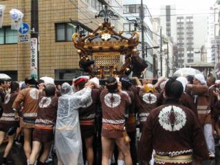 6月9日(土) 「鳥越神社」の例大祭(6) [使用機器:Roland: EDIROL R-09(16bit・44.1KHz)] 佐竹商店街に30分位,避難し,雨が小降りになった所で,南方向に進んで,昨日も行った「二長町」に。ここでも,町内神輿がちょうど担がれているところでした。この町内のハッピは茶色の背中に蝶々が描かれているのが特徴です。ちょうど,午前の神輿が終わるまで録音しました。 (1)2007-06-10nichoumachi_mikoshi.mp3(2.75MB) 上記の音ファイルを,「OneDrive」中の「sound213」にupしたので,ダウンロードの上,お聴き下さい。 | ||