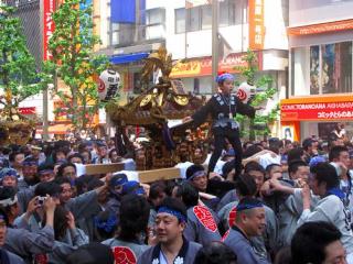 2009年 5月10日(日) 「神田明神」の例大祭 [使用機器:Roland: EDIROL R-09(16bit・44.1KHz),Canon: PowerShot SX10IS] 2009. 5.10(日),本日もお茶の水駅近くの「神田明神」の夏祭りで,氏子町内の神輿の宮入の日です。と言う訳で,10時過ぎに,神田明神の鳥居の前当たりに着きましたが,既に,宮入の真っ最中でした。宮入するのは神輿のみと私は思っていましたが,何と,人形が立っている立派な山車も宮入をするようで,その前には手古舞さん達がいました。 主に男性が神輿をかついでいるところ, (1)2009-05-10kanda-myoujin02.mp3(1.09MB) 女性達がかついでいるところです。 (2)2009-05-10kanda-myoujin03.mp3(2.29MB) 上記の音ファイルを,「OneDrive」中の「sound225」にupしたので,ダウンロードの上,お聴き下さい。 その後,秋葉原に行くと,中央通りでの連合渡御を行うため,神輿が集まってきました。ここにも,手古舞さん達が神輿の前にいました。この手古舞さん達の錫杖の音です。 (3)2009-05-10kanda-myoujin01.mp3(813KB) 上記の音ファイルも,「OneDrive」中の「sound225」にupしたので,ダウンロードの上,お聴き下さい。 そして,中央通りの地下鉄「末広町駅」付近に10基位の神輿が集まり,12:30から秋葉原駅を過ぎた当たりまでの連合渡御が行われました子供が乗っている神輿も結構ありました。この様子を大きな自動車の上から,異人女性がレポートしていました。 なお,音だけではなく映像も撮影しました。すなわち,神田明神への神輿の宮入りと, (4)2009-05-10_kanda_myoujin_miyairi01.flv(5.17MB) (5)2009-05-10_kanda_myoujin_miyairi02.flv(4.78MB) 秋葉原での連合渡御です。 (6)2009-05-10_kanda-myoujin_sairei_akihabara01.flv(18.0MB) (7)2009-05-10_kanda-myoujin_sairei_akihabara02.flv(2.11MB) 上記の映像ダイルを,「Google Drive」中の「movie002」にupしたので,再生してご覧下さい。 ![]() | |||||