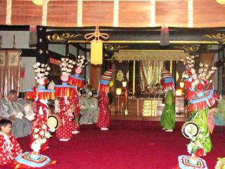 2009年 8月 9日(日)の「王子神社田楽舞」の演奏 [使用機器:Roland: EDIROL R-09(16bit・44.1KHz)] 2009. 8. 9(日),本日は王子駅近くの「王子神社」の祭礼で,16:30より「王子神社田楽舞」が奉納されるとのことで,行ってきました。しかしながら,16: 05頃より雨が降り始め,その後,豪雨となりました。雨足は時々,弱くなりますので,その時を狙って,16:25頃に神社前のビルの軒下に着きました。しかしながら,本殿前につくられた特設舞台は勿論,屋根はありませんので,青ビニールがかけられ,始まる様子は全く見えません。その上,豪雨は周期的に来て,雨は止むかと思うと,また,豪雨になります。そして,雷まで鳴るようになりました。境内から大通りに向かって,まるで川のように茶色い水が流れてゆきます。空は,夜に近い暗さです。結局,17:10頃,「雨が降っているので,田楽舞は特設舞台ではなく,本殿の中で行います」とのお知らせがあり,本殿の中に入りました。雨の上,急な変更もあり,踊り手の人達が中々,集まりません(どうやら,神社と大通りを挟んだ場所にある北区役所内で準備をしていたようです)。ようやく,踊り手の小学生達の一部が来ました。しかしながら,その後も,徐々にしか集まらず,また,その後の,頭の飾り等の準備に時間がかかります。それでも,私を含めて,みなさんは辛抱強く待ちます。 17時50分近くなり,ようやく,始まりました。本殿の奥には,神主さん達や役員の人達が座っています。この田楽舞は「(1)田楽行列(裃を着た人,錫杖を持った人と鎧武者を先頭に,踊り手達の行列),(2)露払い,(3)槍合わせ,(4)七度半(白い布のかかった長刀?を持った人とハッピ姿の幼児達のやりとり),(5)田楽舞奉納(ササラ舞等),(6)福まき」より成り立っているものらしいのですが,本日は (4)(5)のみ行うとの話がありました。まずは,大きな長刀を持った男と,幼児達とのやりとりがあり,そして,ようやく,先程の小学生達による田楽舞が始まりました。 私の前には多数の人達がいるので,手に持ったデジカメを思いっきり上に伸ばしての撮影です。その上,ものすごく暗いので,デジカメのISOを最大の1600 とし,内蔵ストロボを使っての撮影です。シャッター速度も遅く,下に向けた液晶モニターで構図を決めて,前の人達が私のような撮り方をしていない時を狙って撮影します。なお,舞の音楽は,笛,鼓,太鼓で,一部,踊り手達が持っているササラの音も入りました。 (1)2009-08-09ouji-jinja_dengaku-mai01.mp3(933KB) (2)2009-08-09ouji-jinja_dengaku-mai02.mp3(1.19MB) (3)2009-08-09ouji-jinja_dengaku-mai03.mp3(766KB) 上記の音ファイルを,「OneDrive」中の「sound234」にupしたので,ダウンロードの上,お聴き下さい。 舞はまだまだ続くようでしたが,私がいる場所からはよく見えないし,写真はうまく撮れそうもないし,踊りもあまり変わらないみたいな上,雨はようやくほぼ止んだので,18:20頃に途中ですが,本殿を出ました。そして,家に帰ってから,しばらくすると,また,豪雨となりました。