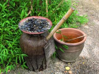 2009年 8月 7日(金)の「向島百花園」の「水琴窟」の音 [使用機器:Roland: EDIROL R-09(16bit・44.1KHz)] 2009. 8. 7(金),東武伊勢崎線「東向島駅」近くの「向島百花園」に行った際,園内にある「水琴窟」の音の録音を行いました。と言っても,この水琴窟,土の中に埋められているものではなく,大きな瓶が地面に置いてあるだけのものですが。 水琴窟は柄杓等で水をかけた後,「キーン」と言う澄んだ感じの滴が落ちる音を楽しむものですが,残念ながら,この水琴窟は水を貯める機構のできが悪く,ほとんど,水が溜まらず,滴の音が聞こえません。 (1)2009-08-07mukoujima-hyaka-en_suikinkutsu01.mp3(680KB) 上記の音ファイルを,「OneDrive」中の「sound235」にupしたので,ダウンロードの上,お聴き下さい。なお,周囲では沢山のセミが鳴いていましたので,その音も聞こえます。 | |||||