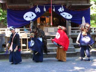 2009年10月11日(日)の奥武蔵「諏訪神社」の「笹がかりの舞」 [使用機器: Canon: PowerShot SX10IS] 2009.10.11(日),奥武蔵の山に行ったのですが,12:11顔振峠と越上山の間の「諏訪神社」(埼玉県飯能市長沢阿寺諏訪神社)に着きました。ここはちょうど秋祭りで,奉納される踊りが踊られているところでした。この踊りは,「笹がかりの舞」と呼ばれるものだそうで,2名の飾り物(万灯)を先頭に,ササを持った人,武士,4名のササラを演奏する人(花笠),5名の笛,踊りを指揮する「はいおい」と獅子に扮した3名の男の踊りの行列が,何回も神社の周りを回ると言うものです(計6回,周りました)。また,「ひょっとこ」と「おかめ」もいました。この様子を,神社正面からと,神社の横からの2ケ所で撮影しました。 (1)2009-10-11Suwa-Jinja_Reitaisai01.flv(4.12MB) (2)2009-10-11Suwa-Jinja_Reitaisai02.flv(4.42MB) 上記の映像ファイルを,「Google Drive」中の「movie020」にupしたので,再生してご覧下さい。 なお,この踊りですが,神社の周りを回った後,今度は,神社の前の階段を下りた所の広場で,また,舞われるそうです。しかしながら,私はまだまだ歩かねばならないので,広場に下りて休憩しているところで,出発しましたので,その後は観られませんでした。また,「笹がかりの舞」と呼ばれる由来ですが,笹を持っていた人に聞いたところ,最後にそのササの周りを回るためだそうです。 | ||