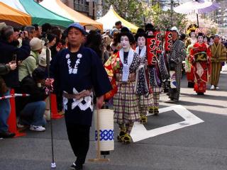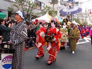 2010年 4月10日(土)の「浅草観音うら一葉桜まつり」 [使用機器:Canon: PowerShot SX10IS] 浅草寺の北の「小松橋通り」で行われている「浅草観音うら一葉桜まつり」で行われた「江戸吉原花魁道中」を見てきました。この通りには,並木として「八重桜」が植えられており,ちょうど,満開でした。 花魁道中は13:30開始と言うことでしたが,実際は13:40頃に開始,行列は西の方から東に向かって進みました。いつもは花魁道中の花魁役は地元出身の女優さんが扮しているのだそうですが,今年は手古(てこ)舞役で道中に参加経験のある女性二人(主婦と大学生)が扮したことより,いつもとは異なり,2組の花魁道中が練り歩きました。行列は,先導の男性,手古舞,太鼓持ち,禿(かむろ),花魁(太夫),世話人,傘持ち,そして,新造と続きました。 2組目の花魁道中を動画で撮影しました。こちらの花魁役は大学生のようですが,禿や花魁の足さばきが悪く,スタスタと歩いていたのが残念です。 (1)2010-04- 10Ichiyou-Sakura-Matsuri01.flv(10.2MB) 上記の映像ファイルを,「Google Drive」中の「movie023」にupしたので,再生してご覧下さい。 | |||||