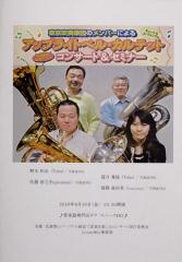 2010年 4月16日(金)の「アップライトベル・カルテット コンサート&セミナー」 [使用機器: ローランド: EDIROL R-09(24bit・48KHz),Zoom:H2(2ch,24bit・96KHz)] 新大久保駅近くの「新大久保管楽器専門店DAC」B1Fの「スペースDO」で行われた「東京吹奏楽団のメンバーによる アップライトベル・カルテット コンサート&セミナー」に行ってきました。これは単なるコンサートではなく,生演奏を録音のできるコンサートで,3席はマイク・ミキサー・録音機持参をでの録音(入場料:5,500円),20席は主催者によるミキシングライン受け録音(入場料:2,500円),そして,残りの95席程は持参したマイク内蔵ポータブルレコーダーで膝上録音(入場料:1,000円)ができるからです。勿論,私は膝上録音です。 このホール,私は初めて行きましたが,地図をしっかり頭に入れて行ったにもかかわらず,ホールのある建物の前を通り過ぎてしまい,探してしまう羽目に陥りました。と言うのは,駅を出て,山手線の外側方向に大通りを進み,2本目の通りを右折して進んだのですが,この通り,住宅街みたいな感じの薄暗い細い通りで,このような通りに楽器店があるのかと思って歩いたのですが,明るく照らされている筈の店は見当たらずにそのまま200m程進んでしまいました。このため,線路に近く線路とは平行の明るい通りに出て,目印のコンビニを探して,ようやく,ホールに行き着くことができました。ホールの入口は線路と平行な細い通りではなく,線路と直角の細い通りにありました。また,ビルの2階に店もありましたが,店は1階ではないため,これでは一度来ないとわからないと思いました。早速,階段を下りて,受付でチケットを切ってもらって中に入ると,既にかなりの人が座っていました。このホール,ホールと言うより,大きな部屋で,椅子は固定式ではなく,単に,普通のパイプ椅子を並べているだけでした。演奏者達の真ん前の2列は空いていましたが,私は直接音は録りたくはない ので,前後左右の中央に近い場所に座りました。 入場料5,500円の人は1名しかいないようで,最後列にマイクを立てて陣取っていました。最も右側には細いテーブルが置かれ,5,6名が座っていましたが,どうやら,そこが2,500円の方の席のようです。このホール,100席程度あるようですが,開始直前でその9割以上が埋まり,その後増えて,数席を残すだけになりました。私は生録音できるコンサートと言うことで,聴衆のほとんどは男性だと思って覚悟して行ったのですが,女性が非常に多く,おそらく,6割以上が女性だったのでしょうか。その上,女性と言っても,女子高校生らしい若い女性が非常に多いのです。これは,もしかして,チケットの売れ行きが悪かったので,頼み込んで動員したのか,あるいは,高校生は入場料300円と非常に安いためだと思います。 そして,19:30に開演しましたが,まずは,「第1部 レコーダーとスピーカーを活用した音楽の楽しみと,演奏のステップアップセミナー」があり(CD等を使った解説の他に,協賛のローランド社の方が,自社の「R-09HR」の宣伝を盛んに行っていました),そして,休憩後,ようやく「第2部 アップライト・カルテット コンサート&ライブ録音」が始まりました。しかしながら,演奏されたのはアンコールの1曲を入れて計8曲で,曲と曲の間に演奏者のおしゃべりが入ったので,演奏時間は実質30分強と短いものでした。また,クラシック音楽は最初の3曲のみで,残りはジャズ系のポピュラー音楽でした。演奏されたクラシック音楽の曲目は以下です。 (1)ヘンデル:「水上の音楽」より「アレグロ」 (2)モーツアルト:アヴェ・ヴェルム・コルプス (3)モーツアルト:「セレナード第13番」より「第1楽章」 アップライトベル・クアルテット[野本和也・望月寛隆(Tuba),佐藤信之・齋藤亜由美(Euphonium)] 演奏前に,録音する人達のために,(1)の最も大きな音と言うのが出されて,録音機のレベル合わせを行った後,正式の演奏が始まりました(ただし,最強音に関しては,後の曲の方が大きかったと思います)。 さて,感想ですが,前述のごとく,クラシック音楽は3曲しかなかったことと他の曲は私の趣味ではない感じの曲だったこと,この金管楽器による編成ではやはりクラシック音楽っぽい響きがあまりしなかったこともありますが,痛烈に思ったのは,このような膝上録音と音楽を楽しむのとは両立しないと言うことです。やはり,コンサートは聴くに徹した方が良いと思います(もしくは,最近の欧州のコンサートのように,コンサート終了後に,ロビーでその演奏を録音したCD- Rが販売されていると言う形が良いのではと思います。今回も,演奏された曲が,1曲200円でCD-Rの形で販売されました)。 そして,「第3部 録音プレイバック体験&ステキなグッズが当たる,お楽しみ三角くじ」となりましたが,夜も遅いせいか,第2部が終わった途端に帰る人が続出し,残っていたのは1/3程度になりました。ここでは,5,500円の人の録音と,主催者による2ch・4ch録音の一部が流され,終了となりました。なお,私の三角くじは外れのCD-Rでした。 膝上録音している人の数ですが,