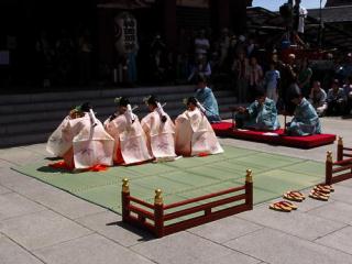 2010年 5月 9日(日)の「神田明神」の祭り(上) [使用機器:Canon: PowerShot SX10IS] 本日はお茶の水駅近くの「神田明神」の祭で(今年は,陰祭りだそうです),「神田明神の大神輿」と「将門塚保存会の大神輿の揃いぶみ宮出」を行うと言うことで,行って,その様子を撮影してきました。9:00より,神主さん達による「発輿祭」が行われ,まずは,雅楽と共に神主さん達が本殿前に入場し,お祈りやお祓いが行われました。そして,9:30より2台の神輿が同時に担ぎ上げられ,最初に前者が門の脇から, (1)2010-05-09Kanda-Myoujin_HonshanoMikoshi01.flv(14.0MB) 次に後者が門の脇から出て行きました。 (2)2010-05-09Kanda-Myoujin_MasakadoMikoshi01.flv(9.00MB) その後,境内では,本殿前で,小学生高学年あるいは中学生でしょうか,彼女達の鈴を持った巫女姿による「浦安の舞」が奉納されました。なお,奏者達による雅楽が演奏されています。 (3)2010-05-09Kanda-Myoujin_UrayasunoMai01.flv(5.54MB) 上記の映像ファイルを,「Google Drive」中の「movie025」にupしたので,再生してご覧下さい。 ![]() | |||||