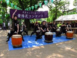 2010年 6月 5日(土)の「白山神社」の「奉納和太鼓」 [使用機器:Roland:EDIROL R-09(24bit・48KHz)] 白山神社で行われている「第26回 文京あじさいまつり」にて,和太鼓の奉納がされるとのことで,行ってきました。私は勘違いしていて14時開始と思ってそれに間に合うように行ったのですが,実際は14: 30開始で,30分以上,待つ羽目になってしまいました。また,「奉納」と言うことで,私はてっきり白山神社本殿の前で行われるのだと思っていましたが,実際は神社の裏の公園で行われました。 そして,定刻通りの14:30開始,全部で6曲がほぼ続けて演奏され,そして,その後,アンコールとして1曲が演奏され,ほぼ15時に終了しました。 (1)2010-06-05Hakusan-Jinja_HounouWadaiko01.mp3 (18.3MB) 上記の音ファイルを「OneDrive」中の「sound255」にupしたので,ダウンロードの上,お聴き下さい。 | ||||