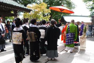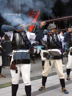 2013年 9月22日(日)の「第27回 江戸幕府鉄砲組百人隊出陣」 [使用機器:キヤノン: PowerShot SX20IS] 2013. 9.22(日)は新大久保駅近くの「皆中稲荷神社(かいちゅういなりじんじゃ)」の例大祭で,ここの境内から,周辺数カ所にて,「第27回 江戸幕府鉄砲組百人隊出陣」が行われるとのことで,前々回の2009. 9.27(日)に続いて撮影に行ってきました(これは2年に1回,行われます)。しかしながら,昨今の「嫌韓・除鮮デモ」に対する「好韓デモ」のためか,前々回とは全くの様変わり,すなわち,前々回は方々で火縄銃の発砲が行われたのですが,今回は皆中稲荷神社と木村屋ビル前で1回づつ,そして,西戸山野球場で行われるとのことで,全くのガッカリでした。これでは,再来年には行く気がしないです。 と言う訳で,まずは,江戸幕府鉄砲組百人隊出陣の行列です(神社の横での発砲は9:50頃,神社前の大久保通りを行列が出陣したのは10:05頃でした。交通安全の人達,神職さん達,そして,町会役員の人達,鳶職の人達です。この映像を「YouTube」にupしました(本ページに戻る場合は,ブラウザの「戻る」でお願いします)。 なお,この行列の映像は方々で撮ったのですが,列がダラダラと進んだり,信号で止まったりで,結局,「長光寺」(東京都新宿区百人町2-1-38)のすぐそばで撮ったものが最もまともでした)。騎馬武者,女性武者,3組の鉄砲組の人達です。この映像を「YouTube」にupしました(本ページに戻る場合は,ブラウザの「戻る」でお願いします)。 「木村屋ビル」前で行われた火縄銃の発砲です。以前は,ビルの玄関近くに鉄砲組の人達が立ち,山手線に向かって火縄銃を発砲し,それを5m位の所からでも見ることがきました。しかしながら,今回は大通りを後に鉄砲組の人達が立ち,山手線に平行に発砲し,加えて,警察の指示と言うことで,30mも離されての見物となりました。また,前々回は3回発砲しましたが,今回は1回のみでした。この映像を「YouTube」にupしました(本ページに戻る場合は,ブラウザの「戻る」でお願いします)。 なお,12:40からは西戸山野球場での発砲が行われたのですが,ここは広くて音が散ってしまい迫力が無いので,行きませんでした。と言うことで,ガッカリ感一杯の「第27回 江戸幕府鉄砲組百人隊出陣」でした。 | ||