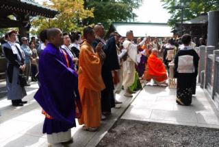 2013年10月17日(木)の「高尾山薬王院」の「大本坊」と「大本堂」の間の行列 [使用機器:リコー: GXR+P10 4.9-52.5mm F3.5-5.6VC] 京王線「高尾山口駅」近くの「高尾山」の中腹にある「薬王院」では,1時間毎に僧侶達が「大本坊」から「大本堂」に行き,そこで読経を行い,そして,戻っていくようです(と言っても,私は9時に確認しただけですが)。その際の行き帰りは,山伏達を先頭に,僧侶達,後ろから2番目の僧侶に赤い笠をさしている人と言う構成の行列となっています。その内の帰りの様子で,まずは,大本堂から僧侶達が出てくるところです。この映像を「YouTube」にupしました(本ページに戻る場合は,ブラウザの「戻る」でお願いします)。 そして,大本坊に戻っていくところです。この映像を「YouTube」にupしました(本ページに戻る場合は,ブラウザの「戻る」でお願いします)。 | ||