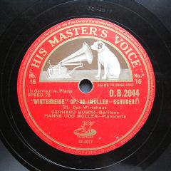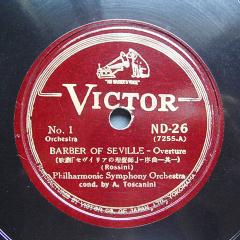 :3割引」だからです。私は勿論,SP盤のコーナーを見て,「シューベルト:冬の旅」より「宿屋,勇気を,幻日」が入った1枚[ゲルハルト・ヒュッシュ(Br),ハンス・ウド・ミュラー(pf),半額で1500円]と,「ロッシーニ:セヴィリアの理髪師序曲」(トスカニーニ指揮ニューヨークpo.,半額で350円)の2枚を入手しました。