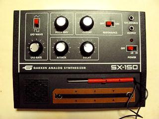 さて,どんな音が出るかですが,一応,説明書に記載されている通りのつまみ位置で,「ギター,管楽器,シンセドラム,猫,ベル」の音を出し,録音したものを,以下のURLにupしましたので,ご興味ある方はダウンロードの上,お聴き下さい。なお,写真の通り,このシンセサイザーには鍵盤がなく,その代わりに,テスターの棒みたいなもので細長い部分にタッチして音を出すものですので,正確なドレミファソラシドは出ません(特に,私のように音感が無いものはダメですね)。