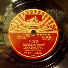 Pastermack編) [フルダ・ラシャンスカ(S) ,ミッシャ・エルマン(vn),エマニュエル・フォイアマン(vc),ルドルフ・ゼルキン(pf)] (日本ビクター蓄音機株式会社,RL-51-B(15365-B), 30cm盤,B面) 私はシューベルトの歌曲は大好きなのですが,この曲は聴いたことが無いと思って,ディートリッヒ・フィッシャー・ディスカウによる「シューベルト:歌曲大全集」のCDを調べてみましたら,「万霊節の連祷」(Litanei auf das Fest Aller seelen)と言う曲名で収録されていました。 (1)電気蓄音機「Numark:PT-01」により再生したものM: 「OneDrive_sound127」中の「ファイル:Schubert_Litanei_Hulda_Lashanska.mp3」(4.26MB) |