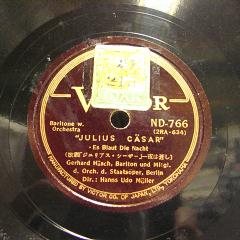 ヘンデル:歌劇「ジュリアス・シーザー」より「夜は蒼し」 [ゲルハルト・ヒュッシュ(Br),ハンス・ウド・ミュラー指揮ベルリン国立歌劇場O.] (日本ビクター株式会社,ND-766(2RA-633),30cm盤,B面) ヘンデルの歌劇って,本来はカストラートが必要なこともあり,第二次世界大戦前はあまり上演されていなかったようですが,第二次世界大戦後はまともな現代音楽がほとんど作曲されなくなったこともあり,近年は随分演奏されるようになりましたが,第二次世界大戦前でもアリアは結構,歌われていたようですね。 (1)電気蓄音機「Numark:PT-01」により再生したものM: 「OneDrive_sound125」中の「ファイル:Handel_Julius_Casar_Es_Blaut_Die_Nacht_Husch.mp3」(3.97MB) |