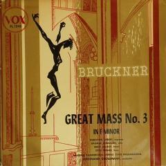 ブルックナー:ミサ曲第3番 フェルディナント・グロスマン指揮ウィーン・ステーツ・フィルハーモニア,アカデミー院合唱団,Dorothea Siebert(S),Dagmar Herrmann(A),Erich Majkut(T),Otto Wiener(Bs) 録音:1953年 (VOX PL7940,A面・B面) ブルックナーの交響曲は第1番から第9番,それに加えて,第0番と第00番がありますが,宗教曲もあり,内,1868年に初稿が作曲された「ミサ曲第3番」と「テ・デウム」と共に,傑作と言われているようです。ミサ曲第3番は,作曲者により何度も手を加えられていて,通常,1881年改訂の第3稿が演奏されています。 <mp3ファイル> 「GoogleDrive」中の「sound1165」中の以下のファイル 全6曲:Bruckner_Mass_No3_Grossmann_ViennaState_po_AcademieKammer_cho_1953A_B.mp3(52.5MB) なお,この曲はミサの定石に従い,「キリエ」「グローリア」「クレド」「サンクトゥス」「ベネディクトゥス」「アニュス・デイ」の6曲からなっています。 |
